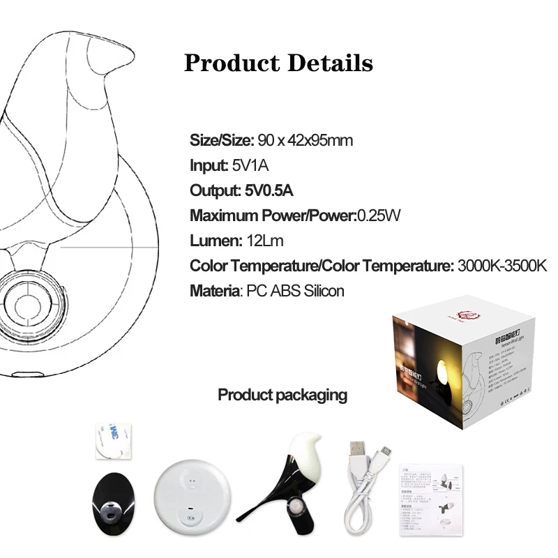 night light dusk to dawn sensor bird-shaped USB powered night light motion sensor switch dimmer bedroom kitchen LED bedside lamp