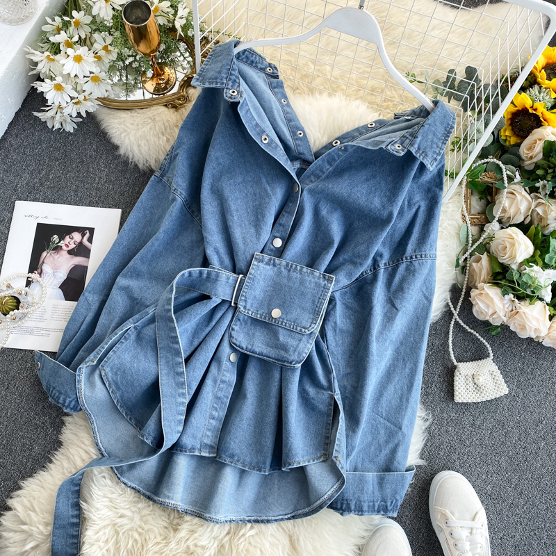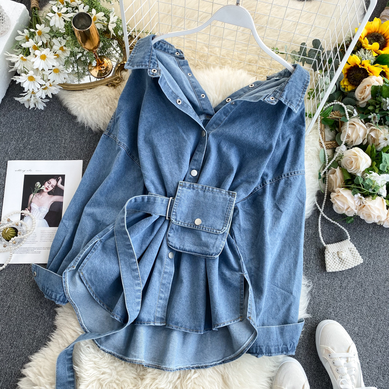 Denim Shirt Women's Design Sense Of Niche Backless Lace Up